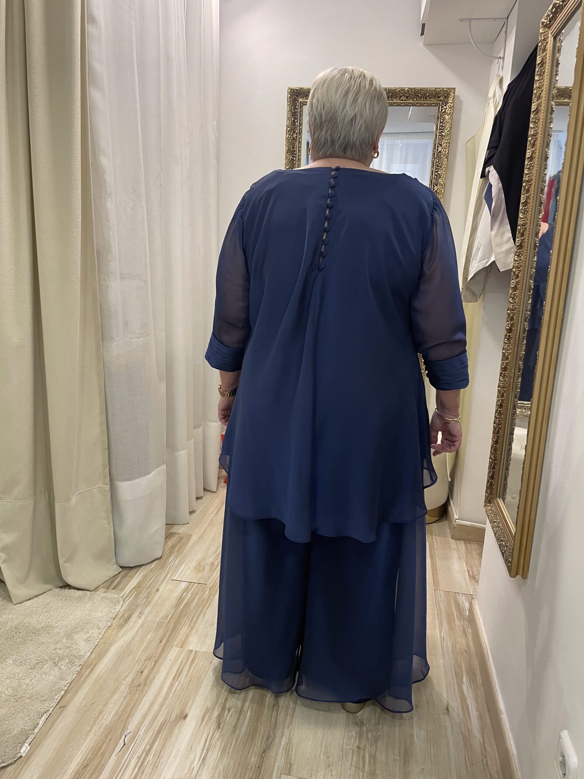 TEJIDO: Gasa de seda natural con crepe tul marino.